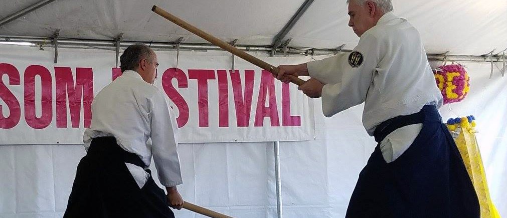 Graves Sensei is pictured above (right) demonstrating a bokken kata. Uke: Chris Bushra